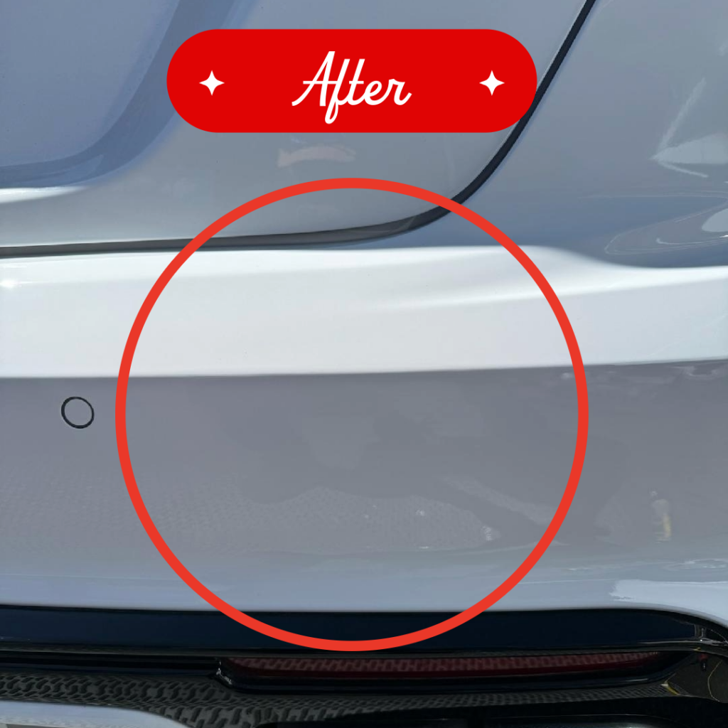The Cadillac owner avoided the hassle of a body shop, saved time, and received a flawless repair—all without leaving home. The bumper looked like new, with no visible trace of the original damage.
